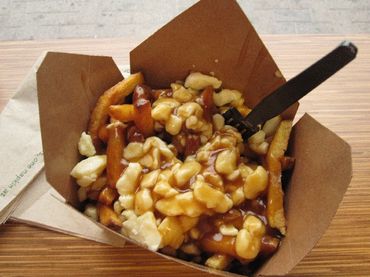 Poutine is a dish created in Quebec in the 1950's consisting of fries (chips), squeaky cheddar cheese curds and piping hot gravy. The word "poutine" means "mess" in old French slang. At La Poutine, we aim to elevate the traditional 1950's poutine by using fresh, organic, homemade and local ingredients wherever possible.
